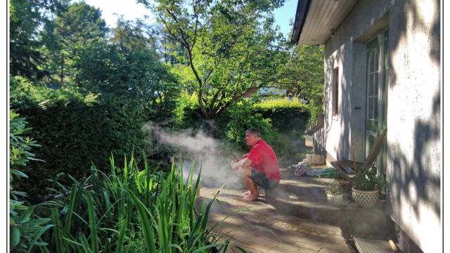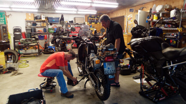 With a fire place, a little garden, a garage for the motorcycles and with a perfectly developed cellar, with room to work and room for guests. The motorcycle “Stammtisch AT Rhön” had invited us to its annual meeting like the other years and we looked forward to seeing them again. But then they asked if we could make a little MultiMediaVison3DExperienceSuperDuperGreatestShowOnEarth presentation of our journey at the meeting. Hmm… We had about 2.5 weeks left and we had never done anything like this before. And the worst: We have made about 47000 pictures and movies and have not seen anything of it yet… But since the interest was so great, we gave our best and made a small presentation. We had a great weekend with campfire, good stories and an organized tour together; and in the end we were glad and grateful that our presentation was well received.Maybe even they liked it, 2times StandingOvations… (Or they just have been happy that it was finally over – who knows…)